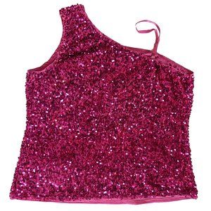 GRACE KARIN Women's Barbie Pink Sequin Tank Top One Shoulder Party Camisole XXL