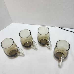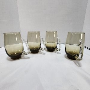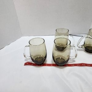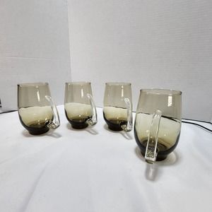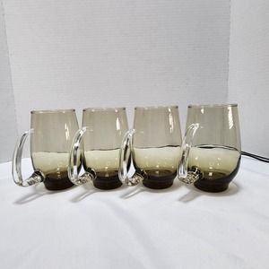 Vintage 1970's 1980's Smoked glasses Libbey Tempo Mug Clear Handle Set of 4