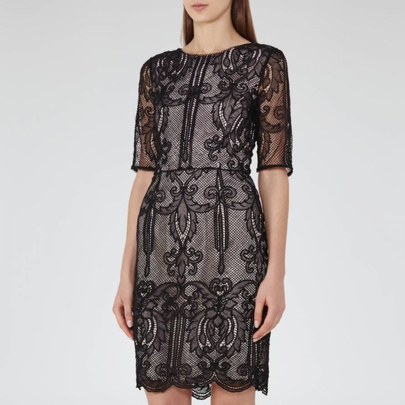 Classic yet contemporary, this graphic lace stunner from REISS reinterprets Gatsby-era glam with the Brit label's signature refinement.
