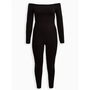 plus size women's ladies' classic black off shoulder sexy long sleeve catsuit birthday anniversary dinner holiday party outfit summer spring fall autumn winter jumpsuit romper outfit penningtons dex lane bryant athleisure lounge wear loungewear bOc