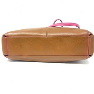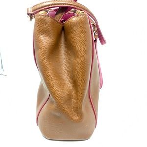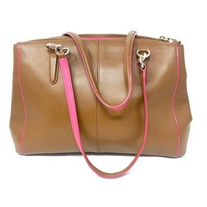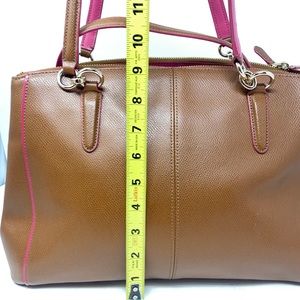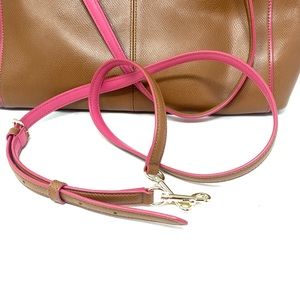 Coach Tan and Pink Christie Crossgrain Satchel. Detachable strap included. Hang tag is missing and reflected in price. Pristine condition. See last picture for additional details.