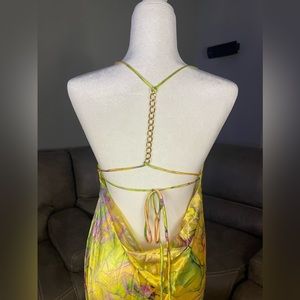 One word, SEXY!!!! This dress is so hot! It has a cowl neckline AND a low cowl back line! The strappy back with gold chain accent crank the heat up even more. This is the Miami Nights satin maxi dress sold from Vici. It is a size Medium & is brand new with the tags still attached.