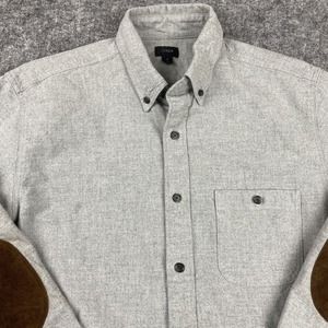 J. Crew Shirt Men Medium Gray Flannel Leather Elbow Patches