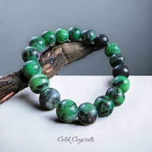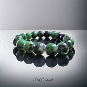 - Experience the beauty and power of natural stones with our Ruby Zoisite Bracelet! This exquisite bracelet is made with all-natural Ruby Zoisite stones, offering a unique blend of primarily gorgeous green colors mixed with other natural hues.