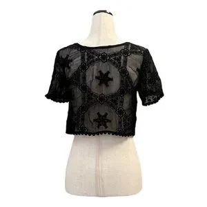 Forever 21 Sheer Black Embroidered Crop Top/ Goth, Witchcore, Royalcore /Small