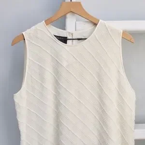 Dana Buchman Women’s Cream Silk Beaded Tank Blouse