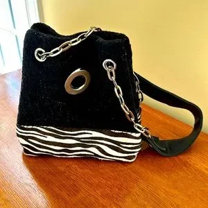 Elevate your style with our stunning vintage Sarah Oliver handbag, adorned with shimmering silver chains and captivating zebra patterns. This exquisite piece combines sophistication with a touch of wild charm, perfect for making a statement wherever you go. Crafted with meticulous attention to detail, it exudes timeless elegance and individuality. Don’t miss your chance to own this unique accessory that seamlessly blends vintage allure with contemporary flair. Shop now and add a touch of luxury to your ensemble.