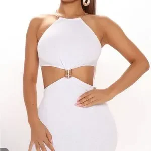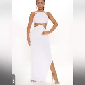 Fashion nova bali babe double lined maxi dress white gold size s