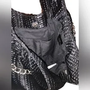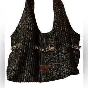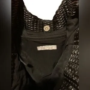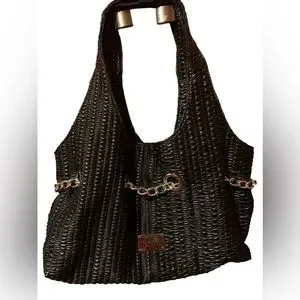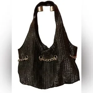 KENNETH COLE REACTION Black & Silver Chain Magnetic Closure Handbag Purse