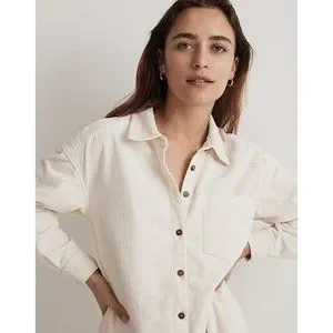 Madewell Womens Corduroy Mini Shirtdress Pockets Lighthouse Ivory S