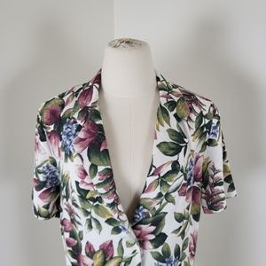 90’s botanical blazer short sleeve blouse button up floral long pockets vintage