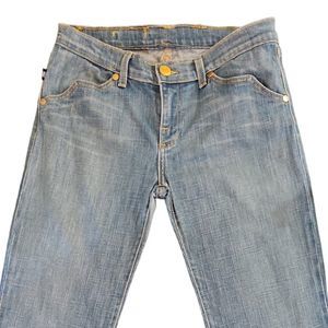 Women's vintage Y2K Mid-rise Jeans Straight 90's Light Denim Pants Blue boot cut