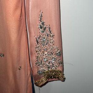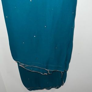 Indian/Pakistani Fancy 3pc Peach and Teal Blue Suit w/ Chiffon Dupatta