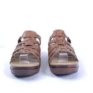 Dansko Brown Strappy Leather Adjustable Slip On Open Toe Platform Clog Sandal 37