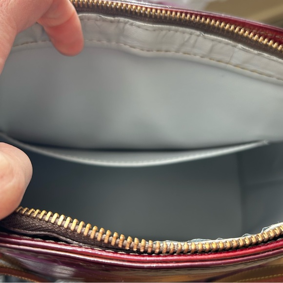 Vernis patent leather has been dyed cordovan brown (deep red/brown similar to LV Amarante), conditioned, and sealed. Variations in color due to different lighting is normal and not a defect. View the video and ask for more photos of anything you’d like to see.