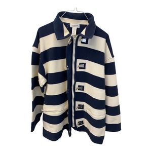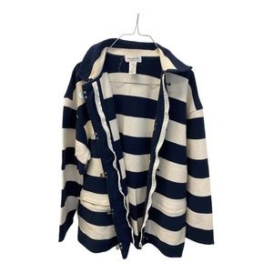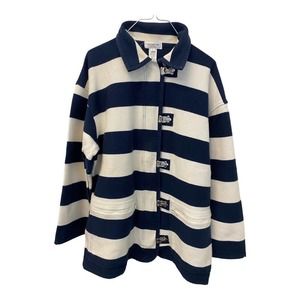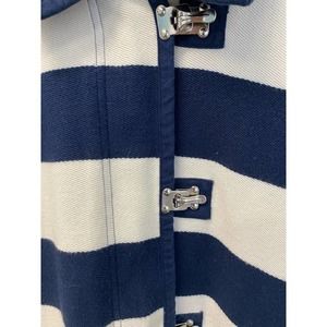 Jones New York Sports Jacket LARGE Womens Striped 100% Cotton Navy Blue White