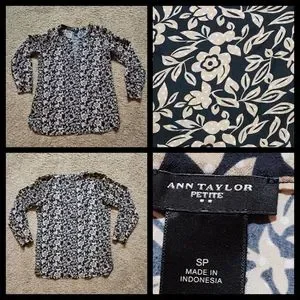 Ann Taylor petite v-neck floral blouse Size SP Colors black tan and white