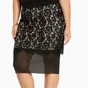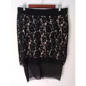 Torrid Black & Nude Lined Floral Lace w/ Chiffon Hem Skirt Size Large or 0X