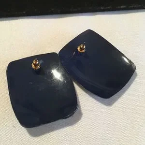 Vintage navy blue metal pierced earrings with gold stars. In very good condition. Earrings measure 1 1/4 inches by 1 1/2 inches.