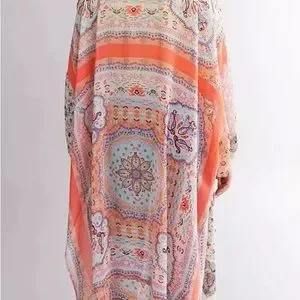 Gimmicks duster kimono. EUC. Oversized. Elastic and tie on sleeves. Shades of orange, pink, green and blue. Size MD.