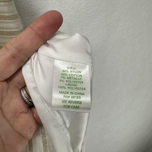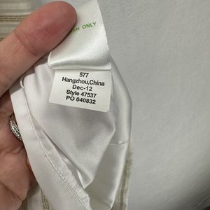 My pictures aren't super bright but this dress is in really nice condition. There are two tiny spots on the strap and the metallic gold threads showing through on the bow and made me think there was a flaw. Otherwise this dress is in amazing condition. Would be perfect for a bridal shower or white party!