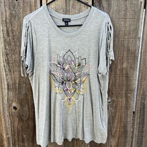SOLD Torrid embellished top with lace-up sleeves