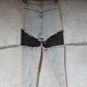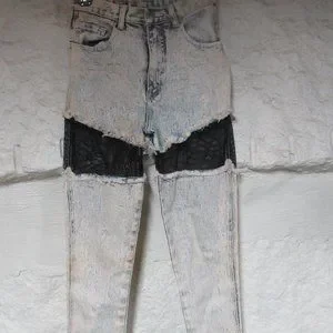 Vintage Retro Traffic Acid Wash Fishnet Jeans. Some staining on leg as shown in photo.