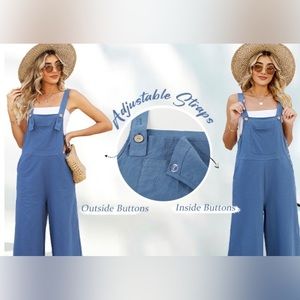 Wide leg overalls jumpsuits, made of high linen and cotton, loose fit, comfortable, light and breathable, casual overalls jumpsuits, large side pockets, buttons to adjust the length