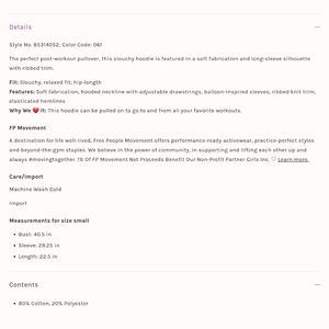 **NEW** $88 FREE PEOPLE FP Movement Sandstorm Pullover Hoodie Hooded Sweatshirt!