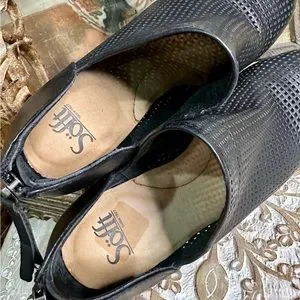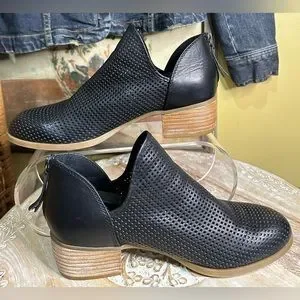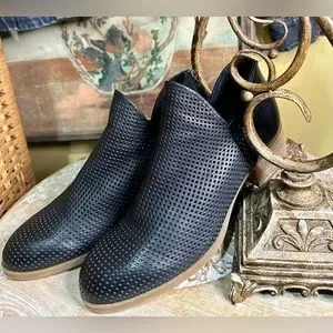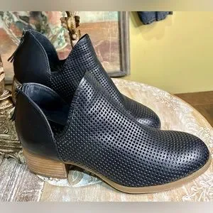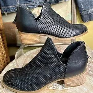 EUC Sofft Black Perforated Leather Ankle Bootie w/ V Notch Size: 8.5