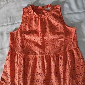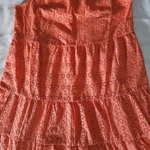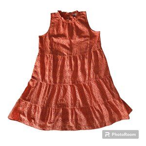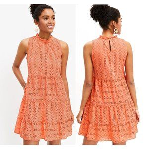LOFT Women's Lively Coral Ruffled Neck Eyelet Tiered Swing Dress Size Medium NWT