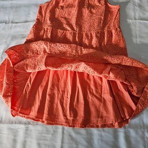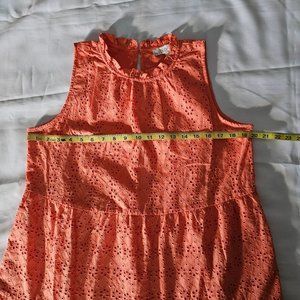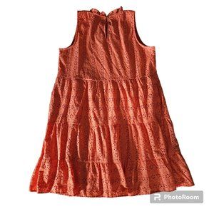LOFT Women's Lively Coral Ruffled Neck Eyelet Tiered Swing Dress Size Medium