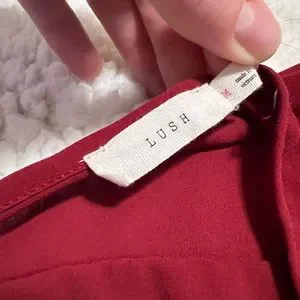 Lush brand Women’s lightweight top size Medium. Deep red color, very flattering and flowy! Worn just once. Can be worn as business casual or dressed down. Kept in a smoke free, dog friendly home. 100% polyester material.