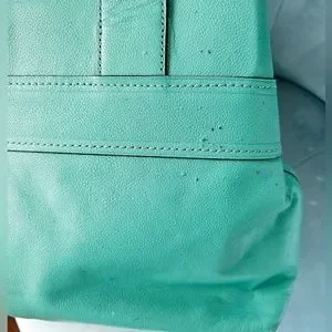 Much loved, but the wear is not terribly noticeable. This bag can be spruced up with handle ribbons or continued rocking as is. Please note detailed photos of blemishes.