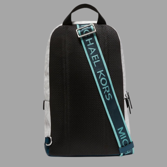 NWOT Michael Kors Cooper Embossed Faux Leather and Logo Stripe Sling Pack. Still has the Michael Kors Card in it but no hang tags.
