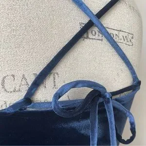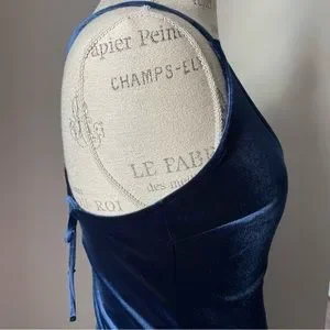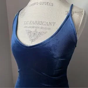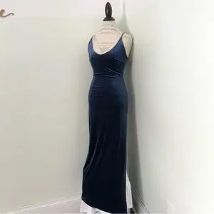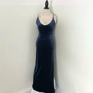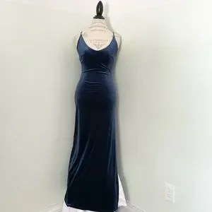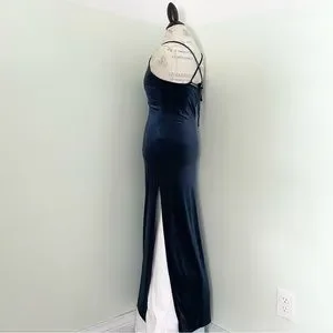 PROM Midnight blue velvet formal dress gown with strappy back and high slit