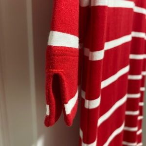 Measurements: 34” from shoulder seam to hem, 19” from shoulder seam to cuff, 17” from pit to pit