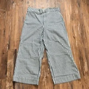 Size 32 Madewell Blue/White Striped Wide Leg Cropped Pants. In good condition. Inseam measures approximately 24.5 inches. Rise measures approximately 12.5 inches. Waist measures approximately 16 inches.