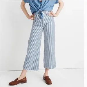 Madewell Blue/White Striped Wide Leg Cropped Pants