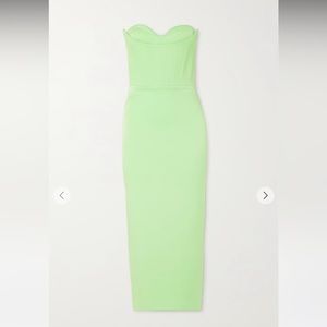 Ansley strapless satin-crepe midi dress in Mint, worn once and dry cleaned, long midi to the ankle, SIZE 10 UK but runs small