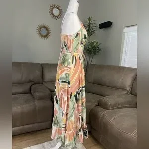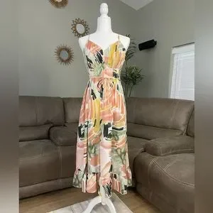 Watercolor Spaghetti Strap Summer Midi Dress Sz M Valentines Date Night Gift