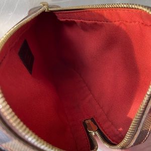 Crafted with the iconic Damier Ebene canvas, it showcases the timeless elegance of Louis Vuitton. Its compact size belies its impressive storage capacity.