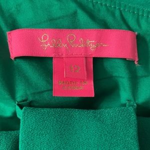 The Lilly Pulitzer Lyra Jumpsuit in Fern Gully Green is a chic style that goes from the office to a night out with ease. A jumpsuit is a favorite, all occasion silhouette and the Lyra is no exception. It's cut in a soft crepe, and features a gorgeous flounce overlay, and a one-shoulder design.