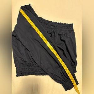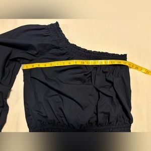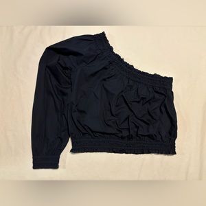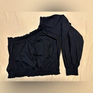 Free People Navy Blue, one arm rusheted top, slight crop or at the waist, M