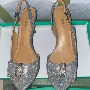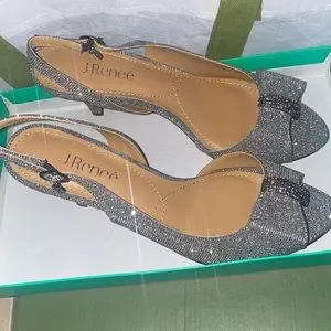 “””Please read before purchasing “”” Brand new J. Renee Sz 9.5 N Narrow Slingback Peep Toe Metallic Silver Sparkle. These shoes are super cute.. any questions please ask before purchasing thank you