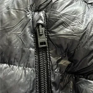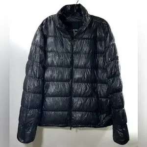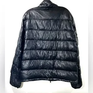 It features a puffer style with a down filling, providing excellent insulation and warmth. The black color adds a sleek and versatile touch to the jacket, making it suitable for various occasions and outfits.