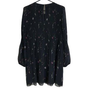 In dreamy chiffon. This is a mini dress with sheer sleeves and accordion pleats that fade towards the hem. It’s made with Fête Chiffon™ — lightweight, semi-sheer fabric with an ethereal drape. This version comes in an exclusive floral print that was designed in-house.