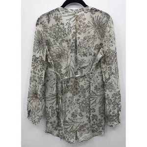 Motherhood Maternity Sheer Floral Top Roll Tab Sleeve Ivory Cream Small