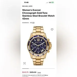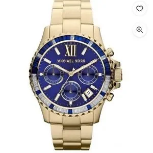 The iconic Everest watch returns with a navy and clear baguette stone topring on an oversized 42mm case. With a navy chronograph dial and gold-tone stainless steel bracelet, this glam sport watch is the perfect statement piece for everyday-wear.