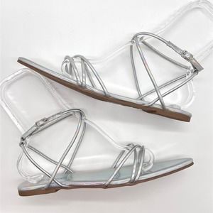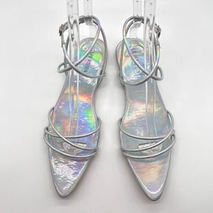 CAPE ROBBIN Shoes Womens 9 Silver Bibi Holographic Ankle Strap Flat Point Sandal